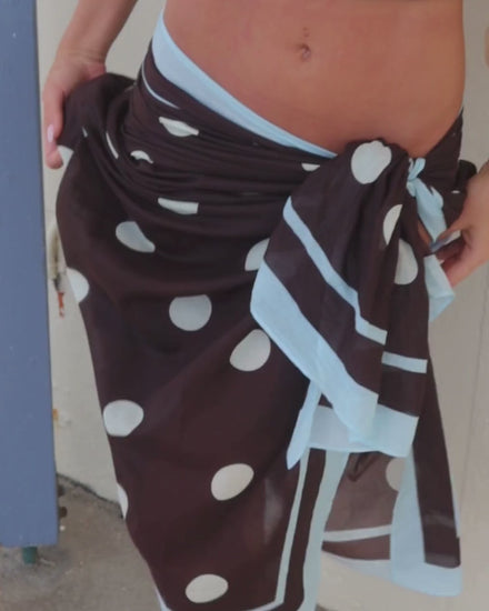 The Polka Dot Sarong in brown and blue plays with contrast - playful print meets a sleek, modern cut. Designed to sit effortlessly on the body, it’s your go-to for easy summer dressing with a hint of attitude. Pair it back or lean all the way in.