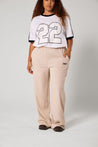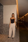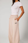 The SŚAINT Lounge Pant is a relaxed, wide-leg style crafted from a soft, structured fabric in Taupe. Featuring an elastic waistband and subtle SŚAINT logo detailing on the upper thigh, it blends comfort with elevated minimalism. Designed for both lounging and styling.